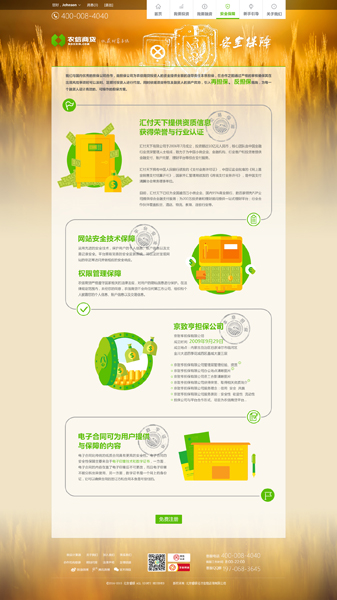 打造农信商贷植根三农的品牌特质,在时下纷繁的P2P平台中脱颖而出,基于此诉求出发,我们为农信商贷塑造了极具专属性的网站形象。着力挖掘农业与金融的结合点,摒弃农业主题旧有的土气落后印象,我们围绕“收获”“成长”主题,金黄饱满的麦浪作为页面背景配以手绘题图,网站整体采用黄绿配色,植物及农作物生长系图标图示,烘托出收益与丰收的喜悦与情怀。金融给人们带来的除了财富还有对人生的改变、梦想的助力,希望种子收获成功,投资改变的不仅是自己的生活,伟大的不只梦想还有时光。